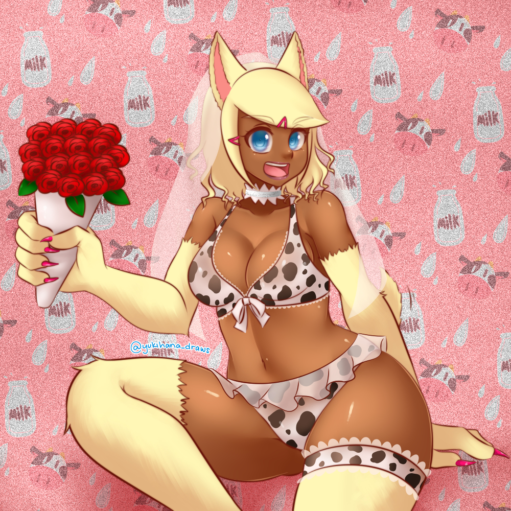 What's better than a wedding-style swimsuit with cow print on it? The werewolf girl who's wearing it and waiting for you.